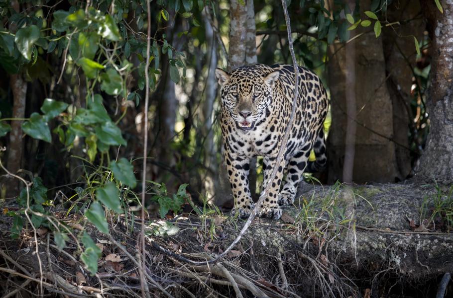 V oblastech mokřadů jako je Pantanal nebo venezuelské Llanos se u jaguárů během posledních pár let vyvinula neobyčejná potravní specializace. Zejména samci totiž s oblibou číhají na nebezpečnou kořist – zubaté kajmany. Takový lov na kajmana, nebo alespoň pokus o něj, můžete s trochou štěstí vidět hlavně koncem léta. Tehdy hladina vody v řekách klesá na minimální úroveň a jaguáři si na vyšších březích zřizují dokonalé pozorovatelny, z nichž nad kajmanem získávají výhodu díky momentu překvapení a možnosti zaútočit na oběť z pro ně výhodné pozice. Já měl prozatím štěstí jen na pokusy, úspěšně ulovený kajman by byl z pohledu fotografa velmi vítanou nadstavbou.