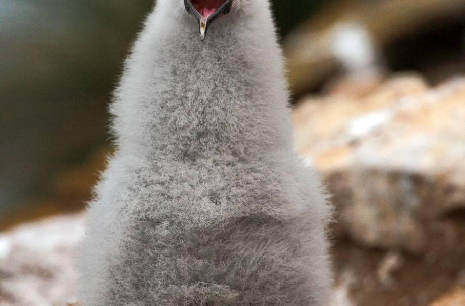 Cesta k albatrosům vede přes kolonii tučňáků skalních, kteří se usadili na skalách jen pár metrů nad mořskou hladinou. To albatrosy jsme našli o mnoho metrů výše, jejich hnízda byla rozmístěná na několika místech těsně u hrany útesu. Většinu dní jsou dospělí albatrosi pryč, na hnízdech z uplácané hlíny zůstávají pouze jejich chundelatá ukřičená mláďata. Rozkošná stvoření, od kterých jsem se nedokázal odtrhnout. Namlouval jsem si, že je musím hlídat před útoky chaluh a další dravců, kteří neustále prolétávali v okolí kolonií. Mláďata albatrosů černobrvých zůstávají o samotě celé dny, zatímco jejich rodiče pátrají v jižním Atlantiku po potravě. O to úchvatnější je pak jejich vzájemné setkání.