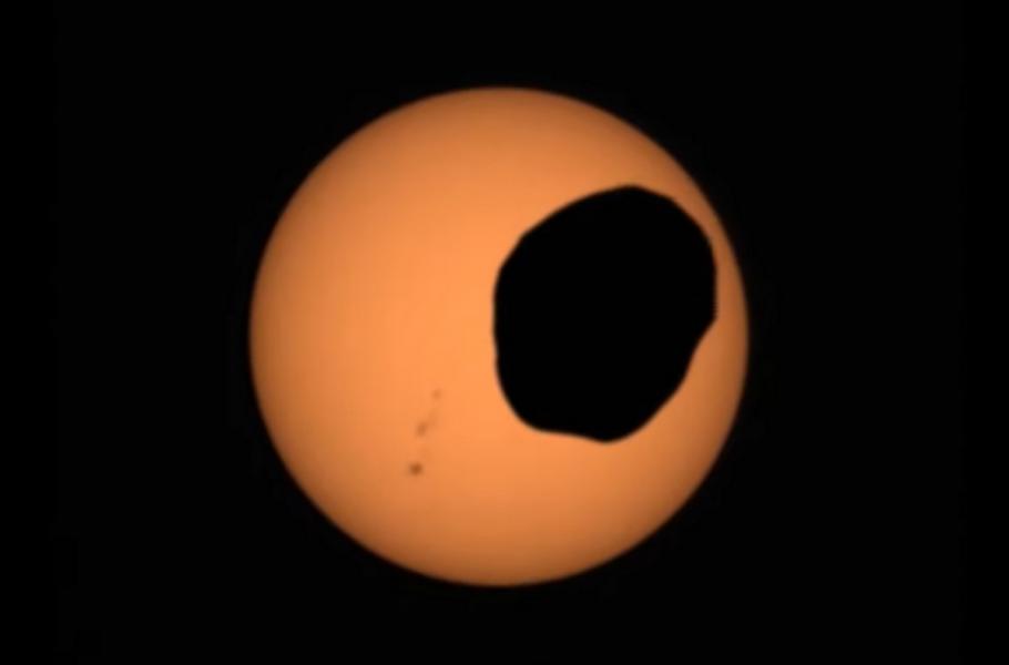 Robotické vozítko Perseverance natočilo video marsovského „zatmění Slunce“. Na záznamu, který trvá zhruba 40 sekund, je zachycený přechod většího ze dvou měsíců rudé planety – Phobosu, přes sluneční kotouč. Podle JPL automatický průzkumník záběr pořídil pomocí kamery nové generace Mastcam-Z už 2. dubna, tedy v 397. marsovský den své mise na rudé planetě. „Zatmění“ na Marsu probíhá podstatně kratší dobu, než trvá tento úkaz typicky na Zemi, a Slunce při něm není zastíněno úplně. Phobos je totiž 157× menší než Měsíc.