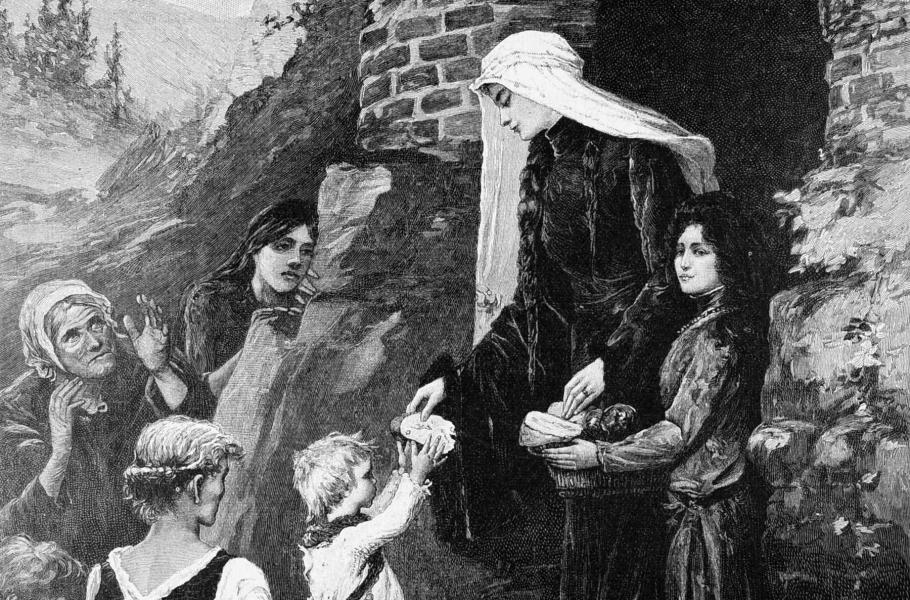 Stala se ochránkyní chudých a trpících, rozdávala pracovní nástroje, pomáhala dlužníkům a v době velkého hladomoru nechala zbudovat několik špitálů, kde se sama starala o nemocné. Tou dobou byl její manžel právě na jedné ze svých cest, takže disponovala knížecí pokladnicí, jejíž veškerý obsah velkoryse použila na pomoc chudým. Pochopitelně si za to vysloužila tvrdou kritiku od zodpovědných úředníků.