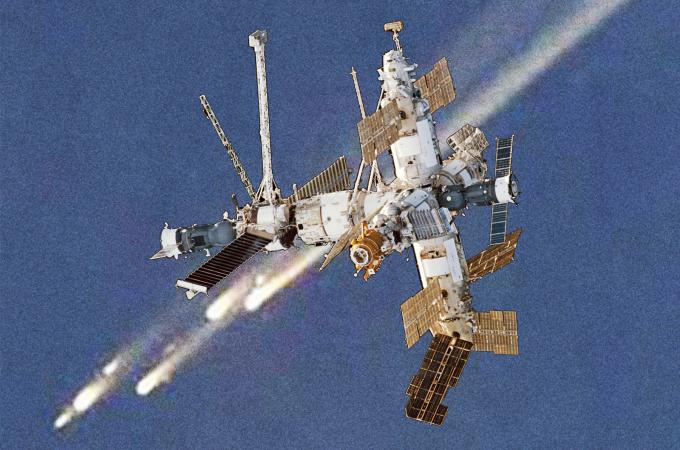V únoru 1997 musela posádka stanice pro změnu hasit požár na palubě, ovšem v létě téhož roku hrozila mnohem větší havárie. Nákladní loď Progress narazila do modulu Spektr, otvorem unikal vzduch a šlo o život. Poškozenou část nakonec kosmonauti hermeticky oddělili, následovala však série poruch dodávek elektřiny, výpadků počítačů a termoregulace atd.