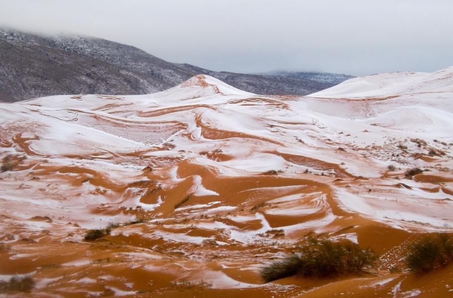 Pro většinu obyvatel třicetitisícového alžírského města Ajn Sefra to byla podívaná, jakou ještě nikdy neviděli – písečné duny saharské pouště zasypal sníh. Stalo se tak poprvé po dlouhých 37 letech a teprve podruhé v zaznamenané historii. Alžírskému Ajn Sefra se přezdívá „brána do pouště“, průměrné teploty zde i v zimních měsících obvykle nepadají pod bod mrazu a přes den stoupají k 10 °C. Bílé Vánoce tak zde i přes čerstvou nadílku nejspíš nehrozí.