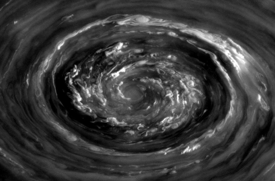Oblasti polárních čepiček okupují mohutné víry, polární oblasti jsou lemovány zvláštními šestiúhelníkovými mraky. Experimenty v laboratoři na Zemi ukázaly, že podobná struktura může být výsledkem vzájemného dynamického působení rotující atmosféry a dalšího atmosférického proudění; přesto zůstává původ těchto mraků jednou z největších záhad ve Sluneční soustavě. Teplota v polárních vírech dosahuje vyšších hodnot než v okolí, což je důsledkem hromadění částic absorbujících sluneční záření v polárních čepičkách. Venuše, Země, Mars i Jupiter mají polární čepičky naopak trvale chladnější.