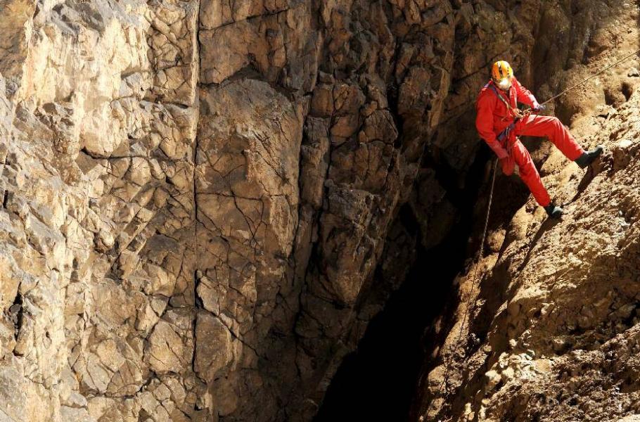 Vůbec nejzajímavější pasáží z Nagelova průzkumu Sloupských jeskyní je sestup na dno Stupňovité propasti, do míst, kam byl kdysi spuštěn i zmiňovaný kameník. V prvé fázi se císařský pověřenec snažil přimět některé z místních obyvatel, aby sestoupili dolů: „Hleděl jsem tedy obyvatele vesnice laskavými slovy a penězi k tomu přiměti, aby dolů sestoupili; leč všechny moje prosby a sliby byly zpočátku marny, ježto smrt kameníkova i je příliš odstrašovala. Proto zdvojnásobil jsem peněžní odměnu a skutečně, bázeň byla konečně překonána ziskuchtivostí. Brzy se přihlásili dva sedláci sloupští, kteří se mně k tomu výzkumu nabídli. Opatřiv je tedy lany, pochodněmi, žebříky a vším možným, čeho je k takovým krkolomným podnikům zapotřebí, odevzdal jsem je do ochrany boží a dal dolů spustiti.“