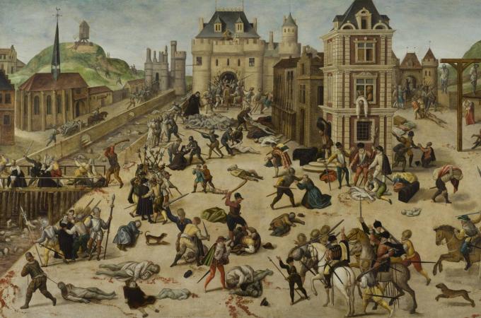 Francie se od šedesátých let 16. století zmítala v pekle náboženských válek mezi katolíky a hugenoty, protestanty kalvínské víry. Mladý král Karel IX. byl slabý vladař, jako regentka za něj vládla královna-matka Kateřina Medicejská. Aby synovi udržela vládu i trochu moci, musela lavírovat mezi představiteli obou konfesí. Nakonec se jí podařilo sjednat mír, jejž mělo 18. srpna 1572 zpečetit uzavření sňatku její katolické dcery Markéty s nejurozenějším z hugenotů, králem Jindřichem Navarrským.