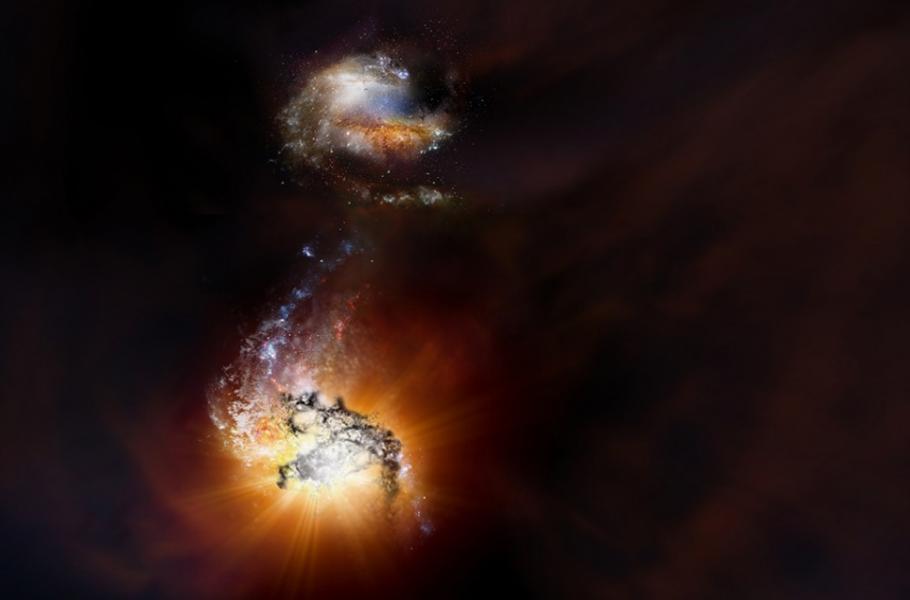 Galaxie, které badatelé pozorovali pomocí soustavy radioteleskopů ALMA, jsme zachytili ve velmi mladém věku. Jsou staré maximálně pár set milionů let. Po splynutí se z těchto galaxií stane anebo již vlastně před miliardami let stal, úctyhodný galaktický gigant.