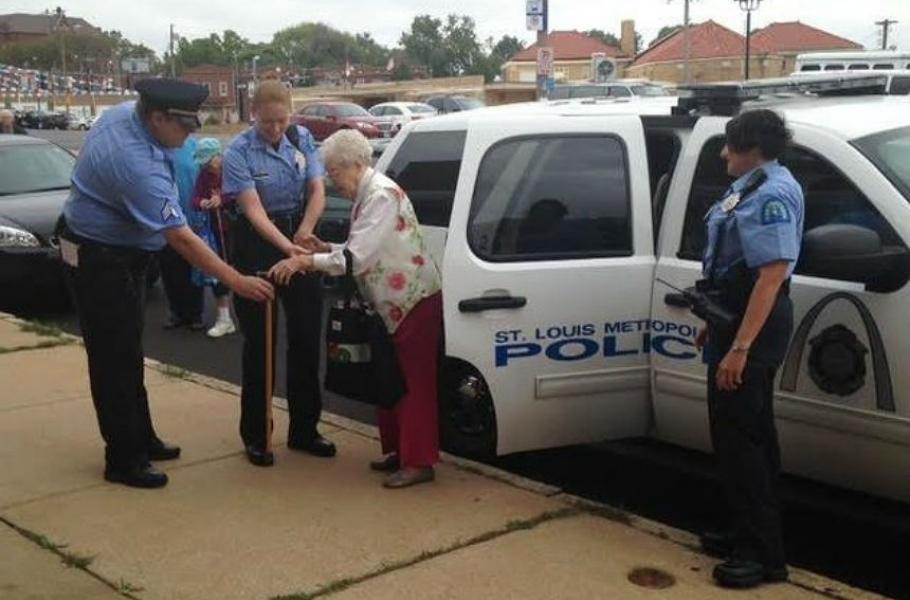 Američanka Edie Simmsová letos oslavila 102. narozeniny a stále jí ještě chybělo odškrtnout několik položek ze seznamu věcí, které chce zažít před smrtí – mimo jiné si přála být zatčena policií. Její přátelé z domova pro seniory proto kontaktovali policejní sbor St. Louis a překvapenou Edie nakonec při procházce po ulici „sebrala“ hlídka.