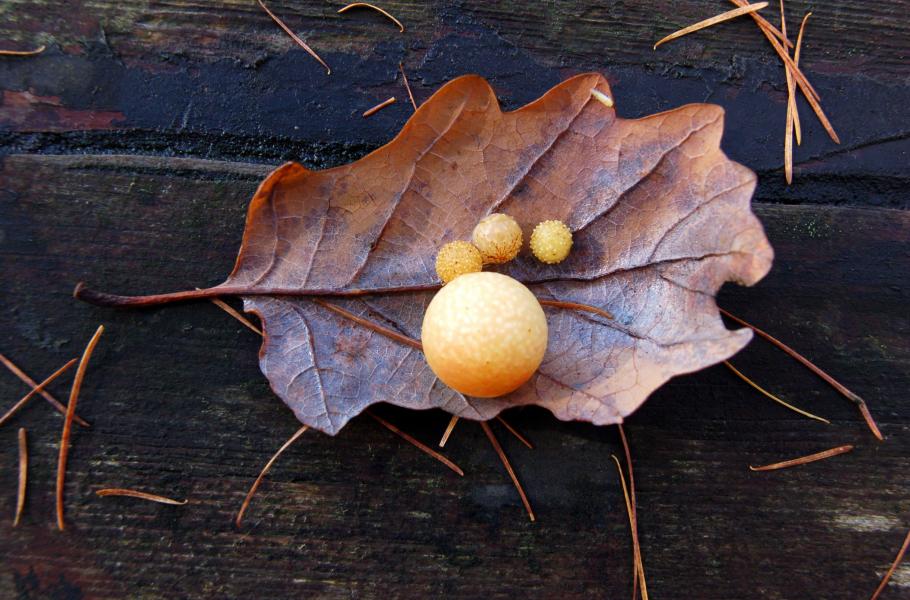 Ve smíšených a listnatých lesích je na podzim možné objevit na spodní straně dubových listů zelenočervené kuličky o průměru asi 20 mm (až 26 mm). Takzvané duběnky jsou druhem hálky (rostlinný novotvar), kterou způsobuje drobný blanokřídlý hmyz – žlabatka dubová (Cynips quercusfolii).