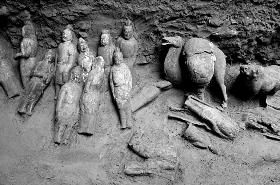 Starodávný hrob čínského generála a jeho princezny byl plný figurek