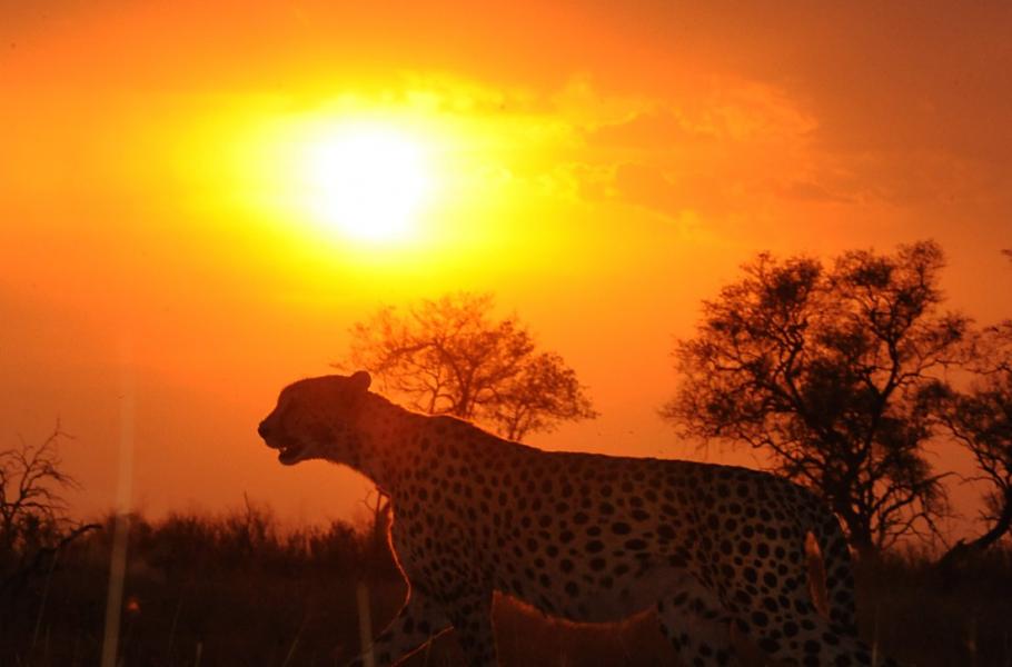 Rudý kotouč si vybírá místo, kam se schovat a já přemýšlím, jak využít jeho nádhernou barvu. Gepardi nejsou sloni ani žirafy a mít je na společném záběru se zapadajícím sluncem znamená dostat se co nejníž. Hlavou se mihne nápad, který okamžitě nahlas konzultuji s průvodci: „Co kdybych si lehl vedle auta? Potřeboval bych zabrat šelmy skrz trávu směrem ke slunci…“