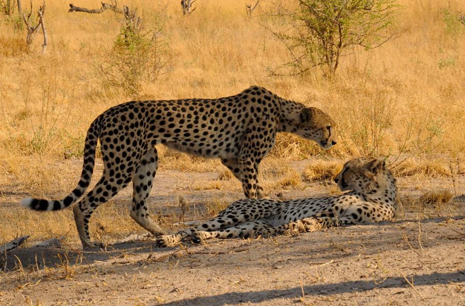 Nos mám zabořený do trávy a před kolo vystrkuji jen fotoaparát. Sotva vidím do hledáčku. Přecpaná a líně se povalující kočka ovšem najednou zvedá hlavu, podívá se mým směrem a prudce vyskočí. Přikrčí se a naježí. Tělem mi projíždí neuvěřitelné napětí. Být s kočkovitou šelmou na stejné úrovni očí je úplně jiný pocit, než pořizovat snímky z bezpečí auta. I když gepard nepatří mezi agresivní kočky, které napadají člověka, je to přece jen skvěle vyzbrojený lovec, který si zaslouží patřičný respekt.