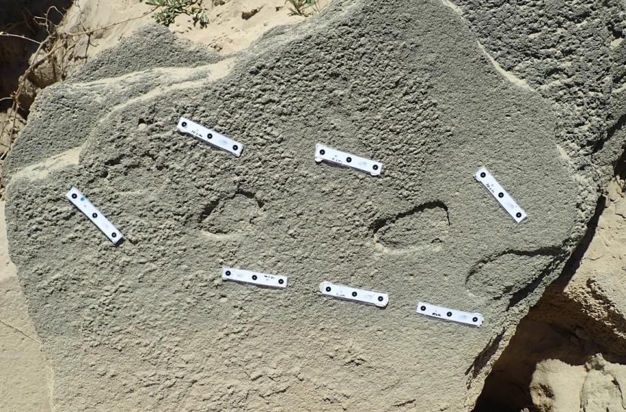 Lidské stopy z lokality Kleinkrantz. (foto: African Centre for Coastal Palaeoscience, Charles Helm, CC BY-SA 4.0)