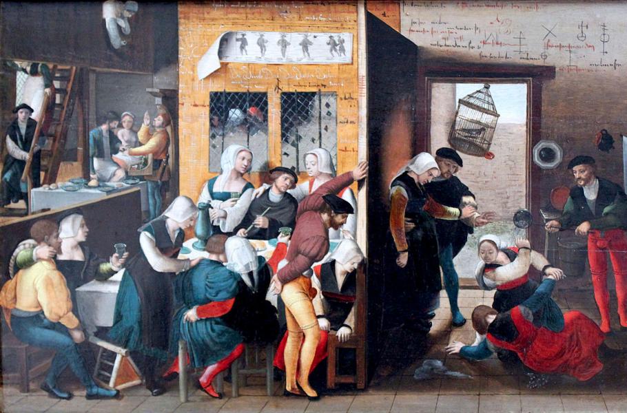 Veselí i násilí v renesančním nevěstinci na obraze Brunšvického monogramisty z roku 1537. (ilustrace: Wikimedia Commons, PDM 1.0)