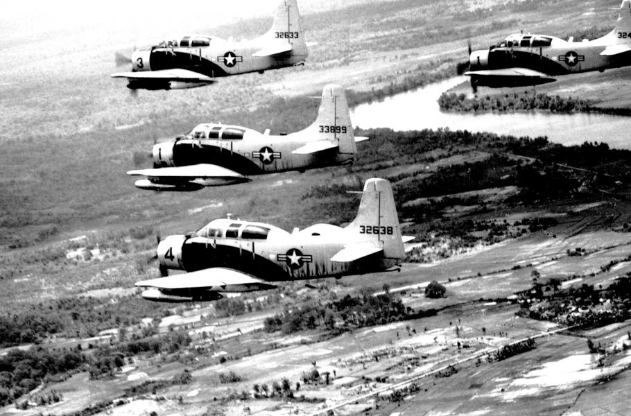Na pomoc (i přes nevlídné počasí) odstartovaly další bitevníky, tentokrát šlo o šest jednomotorových A-1A Skyraider, vedených majorem Bernie Fisherem. Jeden z nich však dostal zásah do motoru a jeho pilot major Dafford Meyers se ho pokusil posadit nouzově na přistávací dráhu u tábora. Pod břichem letounu však měl stále zavěšenou jednu přídavnou nádrž s palivem. Ta se po nárazu na zem okamžitě vzňala a skyraider se jako hořící meteor řítil po ploše a zastavil se až o násep za přistávací dráhou.