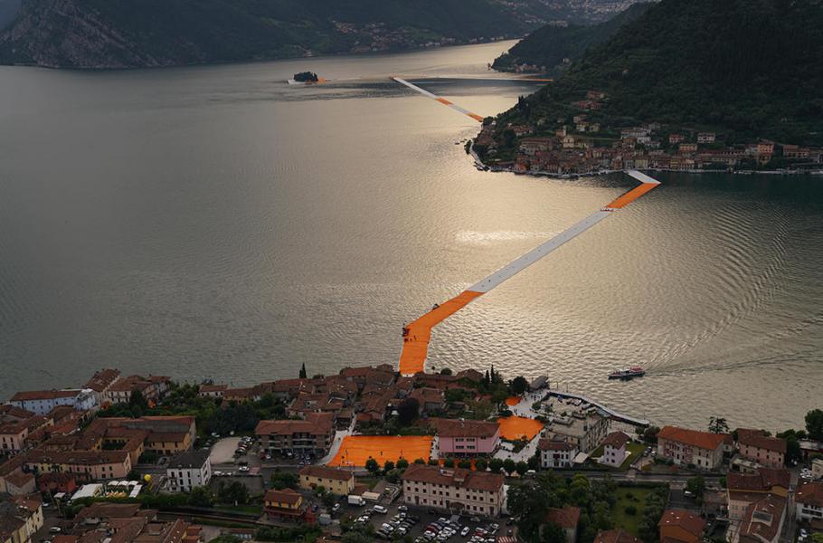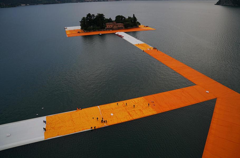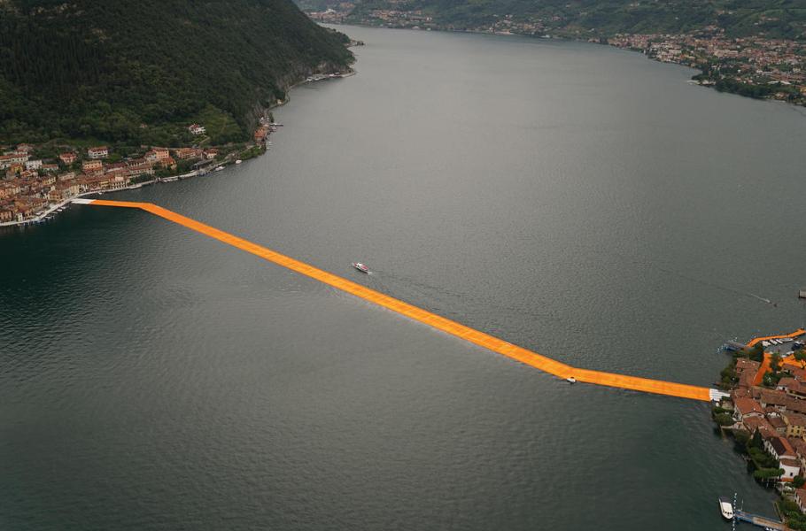 Originální instalace na hladině ledovcového jezera Iseo spojuje pevninské Sulzano s ostrovem Monte Isola a jeden z malých soukromých ostrůvků pomocí 220 tisíc plovoucích polyethylenových kostek. Plovoucí chodník měří na délku úctyhodné tři kilometry. Jeho výstavba stála 15 milionů euro a je kompletně financována z prodeje Christových děl.