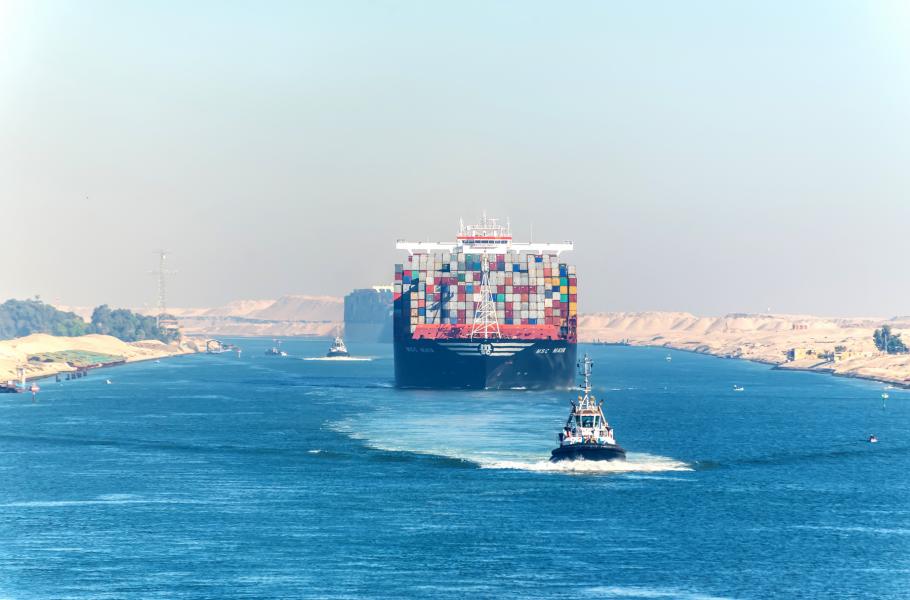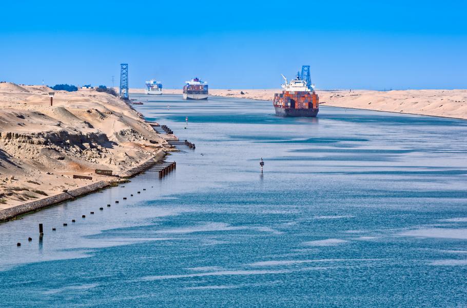 Obrovská loď se valí pouští – i takový pohled se vám může naskytnout cestou ve vlaku mezi egyptskými městy Ismailia a Port Said. Tankery a nákladní giganti však samozřejmě nekloužou po písku, nýbrž po vodách Suezského průplavu. Spojnice Rudého a Středozemního moře měří úctyhodných 193,3 km, dosahuje hloubky až 24 m a po posledním rozšíření v roce 2010 pojme lodě s šířkou do 77,5 m při ponoru až 12,2 m. Jinými slovy, kanál mohou využít prakticky všechna zaoceánská plavidla, kromě těch nejrozměrnějších. Brázdí jej proto zhruba pět desítek lodí denně, přičemž každá průměrně zaplatí za průjezd v přepočtu 7,4–10 milionů korun.