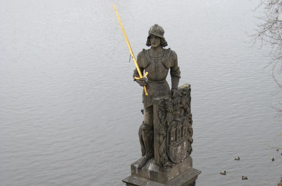 Bruncvík na hřebenu pilíře Karlova mostu. (foto: Wikimedia Commons, Ludek, CC BY-SA 3.0)