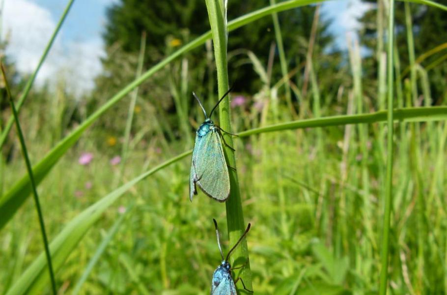 Lokalita je na motýly vskutku bohatá – vyskytuje se zde např. ohniváček modrolemý (Lycaena hippothoe), vlnopásník pětipásný (Scopula immutata), plavokřídlec luční (Mythimna impura), řada druhů modrásků a mnoho dalších. My jsme navíc objevili zajímavého a stále vzácnějšího přástevníka chrastavcového (Diacrisia sannio), či drobného vřetenuškovitého motýlka zelenáčka šťovíkového (Adscita statices). Samičky od samečků tohoto druhu lze snadno rozeznat: samečkové se pyšní hřebenovitými tykadly, zatímco tykadla samiček jsou štíhlá.