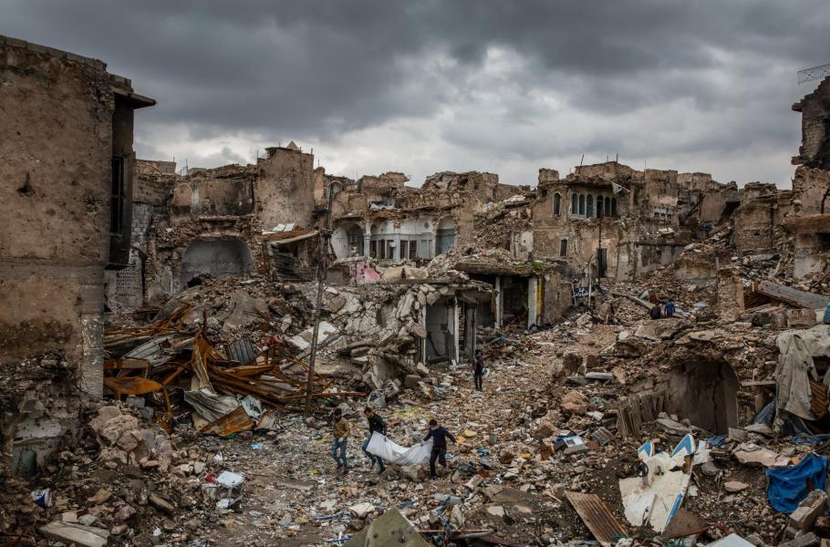 Islámský stát padl a je minulostí. Ale o život se rval s takovým odhodláním, že musely postupující armády srovnat dům za domem téměř v každém osvobozovaném městě. Tisíce lidí přišly o střechu nad hlavou. Každý den nacházejí vojáci masové hroby, a v jednom z nich leží i čtyři bratranci z Hamoudovy rodiny. Jeho dcera Sára nosí kvůli poškozenému zraku silné brýle, přesto nemůže nevidět hory odpadků, jež se kupí v sousedství. Málokdo má pro dřívější pány dobré slovo – pokud se tedy nezeptáte na kvalitu služeb, které zajišťovali. „V tomto musíme být upřímní,“ připouští Hamoud, „za ISIS to tu bylo podstatně čistší.“