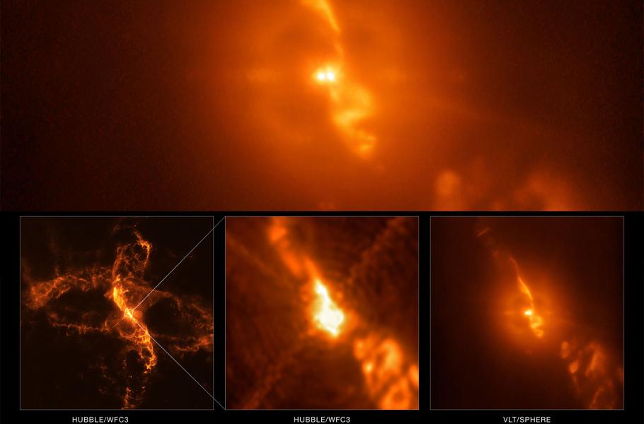 Během testování nového subsystému ZIMPOL pro přístroj SPHERE, který je určen ke hledání extrasolárních planet, se astronomům podařilo pořídit působivý detailní záběr dokumentující bouřlivý partnerský vztah symbiotické dvojhvězdy R Aquarii