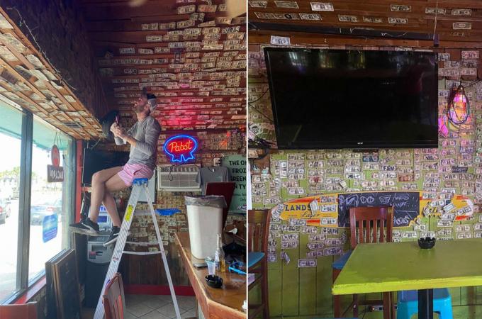 Spásná tapeta: Výplatu zaměstnancům zajistila dolarová výzdoba baru