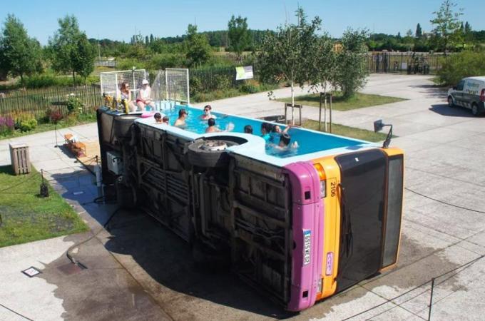 Francouzský umělec přestavěl vysloužilý autobus na veřejný bazén
