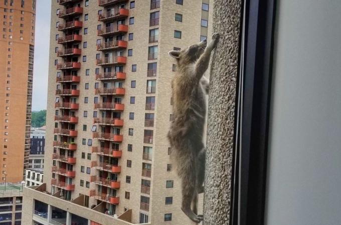 Šplhající medvídek: Mýval zvládl výstup na pětadvacetipatrový mrakodrap