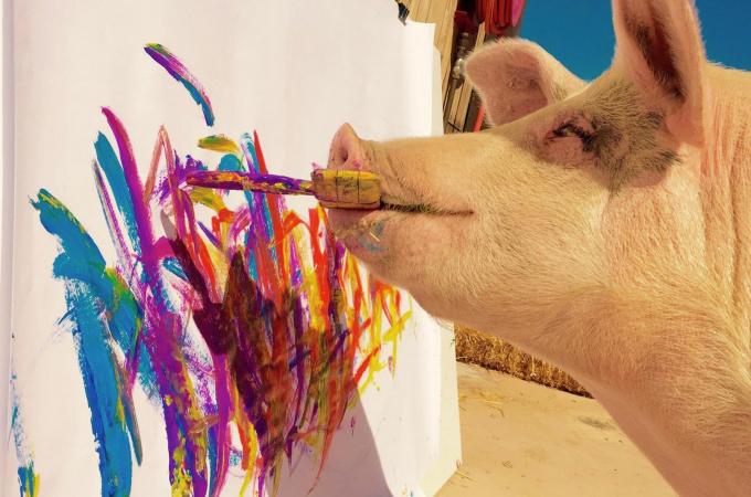 Talentovaný pan Pigcasso: Obrazy malované vepřem stojí desetitisíce