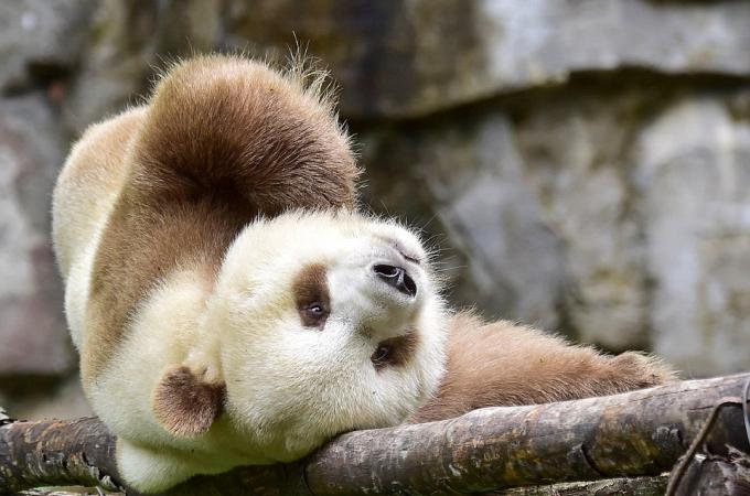 Z outsidera celebritou: Unikátní hnědá panda velká se má k světu
