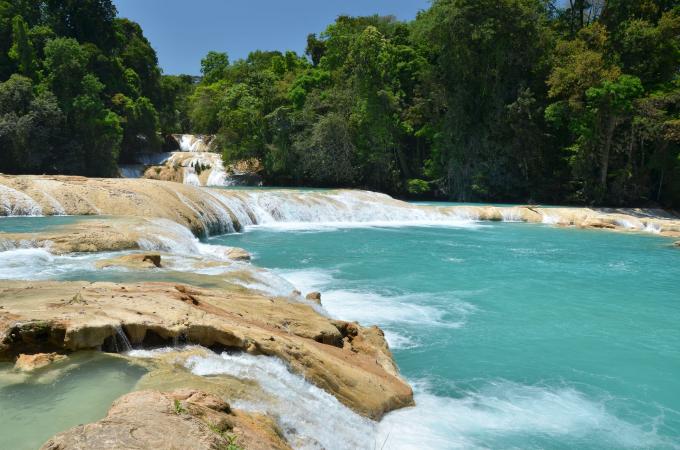 Udělám pár posledních kroků a zůstávám ohromeně stát. Při pohledu na vodopády Agua Azul, vystupující s tichým šuměním z magických propletenců tropické džungle, se tají dech. Sytě tyrkysová barva řeky s okolní kulisou tisíců odstínů zelené džungle vytváří fascinující obraz. Schází jen cedule „vítej v Ráji“