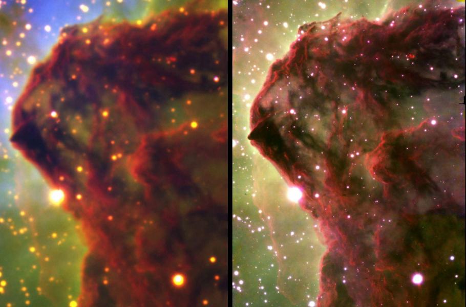 Tým astronomů, který vedl Patrick Hartigan z americké Rice University, pořídil neobvykle detailní snímky Mlhoviny Carina v infračervené oblasti. Zaměřili se na západní oblast mlhoviny, zvanou West Wall of the Nebula. Snímky mají rozlišení, které je nevídané u pozemských observatoří. Odpovídá snímkům budoucího vesmírného teleskopu Jamese Webba.