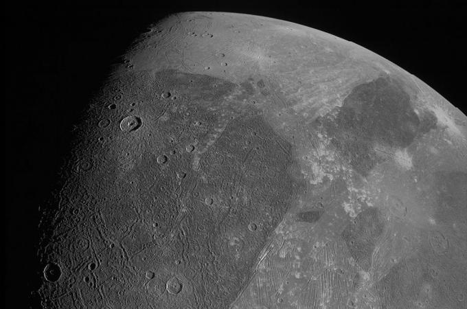 Podle japonského planetologa narazilo před čtyřmi miliardami let do Jupiterova Ganymedu těleso o velikosti 300 km a vytvořilo na něm 1 600 km velký kráter. Jupiterův měsíc poté začal rotovat úplně jinak.