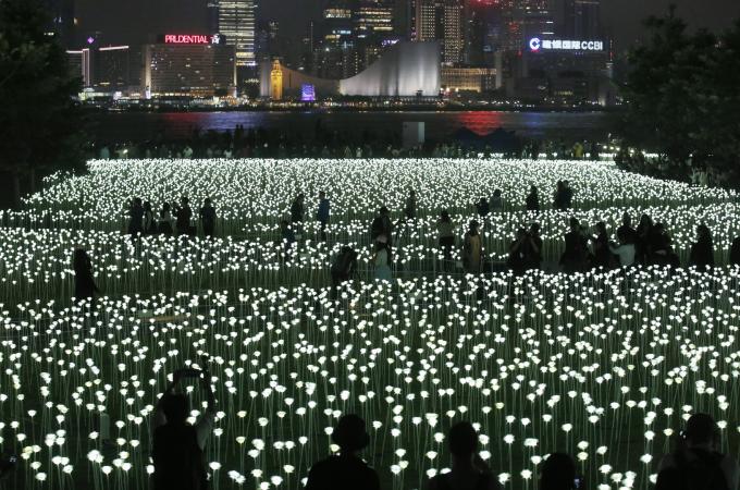 Valentýnské oslavy: Hongkong rozzářilo 25 tisíc světélkujících růží