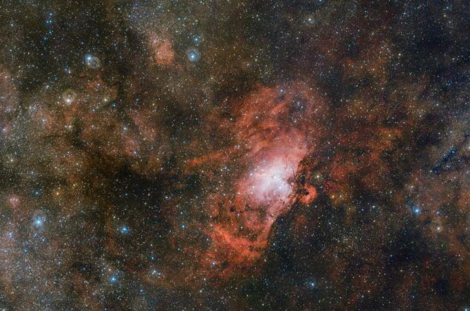 Fascinující snímek Webbova dalekohledu nabízí pohled na jednu z nejbližších hvězdných porodnic, kde se v zákoutích Humří mlhoviny rodí velké a žhavé hvězdy.