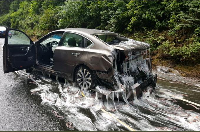 Lepkavá scéna jako z hororu: Nehoda kamionu plného slizkých úhořů