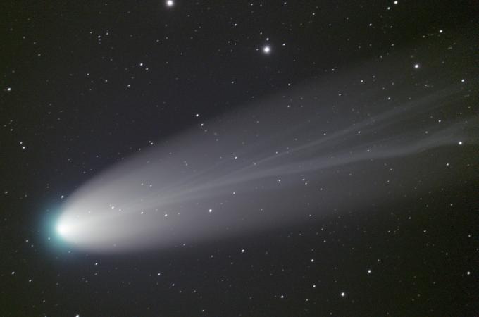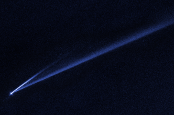 Pozorování Keckových dalekohledů se spektrometrem NIRSPEC prozradilo, že horký plynný obr WASP-69b za sebou vleče ohon dlouhý přes 560 tisíc kilometrů
