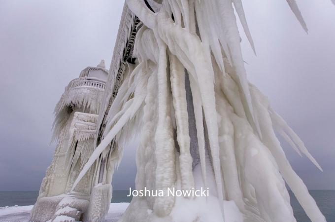 Mrazivá strnulost: Podívejte se na zamrzlý maják u Michiganského jezera