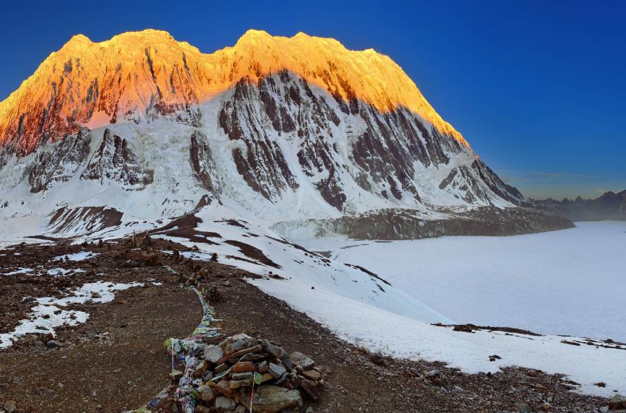 Těsně před čtvrtou hodinou ranní, opět sám a s plnou výbavou, opouštím za tmy tábor a pomalým krokem začínám stoupat na skalnatý výstupek nade mnou. Funím jako lokomotiva, které uniká pára, což je opravdu případné srovnání – nejen pokud jde o úbytek sil, ale i zvukové projevy. Za několik minut ze mne leje, zastavuji co patnáct kroků a nemůžu se pořádně nadechnout. Svítání jsem ale stihl na minutu přesně. Nade mnou je modré nebe a průzračně čistý vzduch. Himálajská nádhera se v jedné z nesčetných podob znovu opakuje.