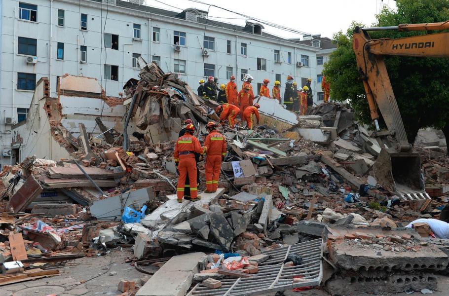 Následkem neodborného stavebního zásahu se zřítila třípatrová budova v Šanghaji. Investor nařídil zbourání nosných zdí