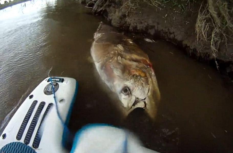 Svědkem neobvyklé podívané se stal Kevin Brady a jeho přátelé. Během plavby po řece Severn na jihozápadě Anglie si všimli obří mršiny pohupující se u břehu. Rybáři si nejdříve mysleli, že jde o mršinu utonulé krávy, teprve bližší pohled odhalil, že jde ve skutečnosti o mrtvolu více než dvoumetrového tuňáka obecného.