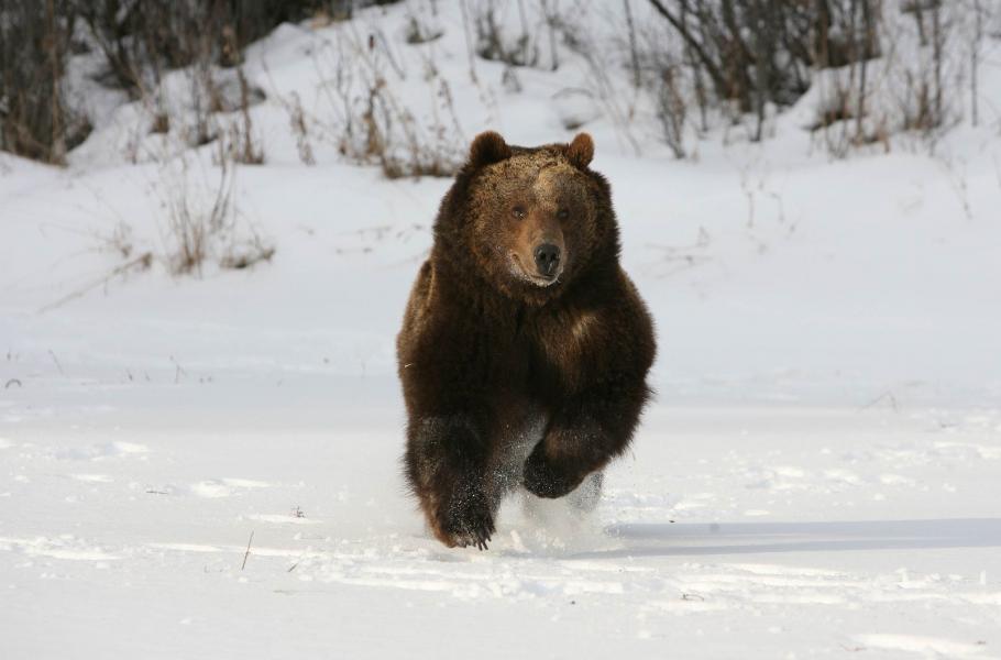 Rozhodně mu neutečete - grizzly je zdatný běžec a dokáže vyvinout rychlost až 50 km/h.