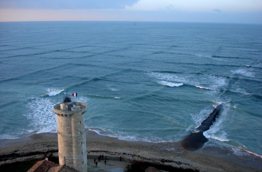Čtvercové vlny u Velrybího majáku na ostrově Île de Ré v Biskajském zálivu. (foto: Wikimedia Commons, Michel Griffon, CC BY 3.0)