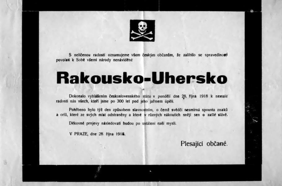 Ostatně o tom, jak by se měli občané toho času chovat, otiskly noviny také „Desatero pro tyto velké dny“. Nemalé veselí způsobil pohřební vůz projíždějící ulicemi Prahy s nápisem „Rakousko umřelo“. Skon mocnářství oslavovaly i letáky ve formě parte, které hlásaly konec Rakouska-Uherska.