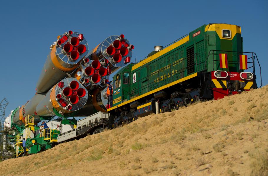 Záběry na lokomotivu táhnoucí raketu Sojuz patří k ikonickým snímkům kosmonautiky. (foto: Wikimedia Commons, NASA, Carla Cioffi, CC BY 4.0)