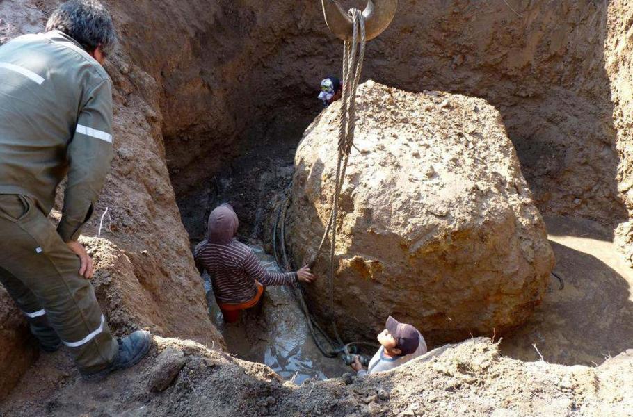 Astronomové v Argentině vytáhli na povrch možná druhý největší meteorit, který byl kdy nalezen. Váží přes 30 tun a na Zemi spadl před čtyřmi tisíci lety. Vědci jsou ale zatím opatrní a upozorňují, že nález se ještě musí převážit. O druhé místo totiž bude soupeřit s podobně těžkým meteoritem - 37tunovým El Chaco, který se našel ve stejné oblasti.