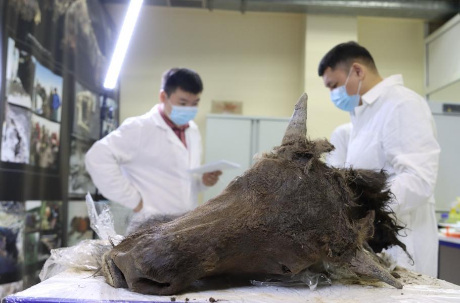 Pitva mumifikovaného bizona ze Sibiře, odborníky ze Severovýchodní federální univerzity v Jakutsku. (foto: NEFU Press Service, Svetlana Pavlova, CC BY-SA 4.0)
