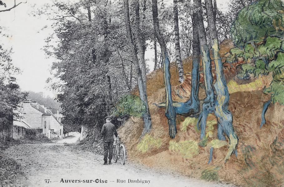 Místo, kde obraz vznikl, našel náhodou ředitel muzea Wouter van der Veen díky více než sto let staré pohlednici, na níž byl zachycen kopeček s charakteristickými stromy a kořeny. Šlo o pahorek porostlý stromy a kořeny v Auvers-sur-Oise u Paříže. Odborníci muzea následně snímek porovnali s van Goghovým obrazem.