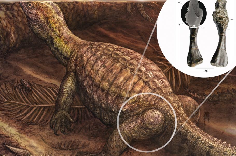 Na stehenní kosti praželvy objevili vědci podezřelý útvar - ukázalo se, že s velkou pravděpodobností jde o nádor starý 240 milionů let