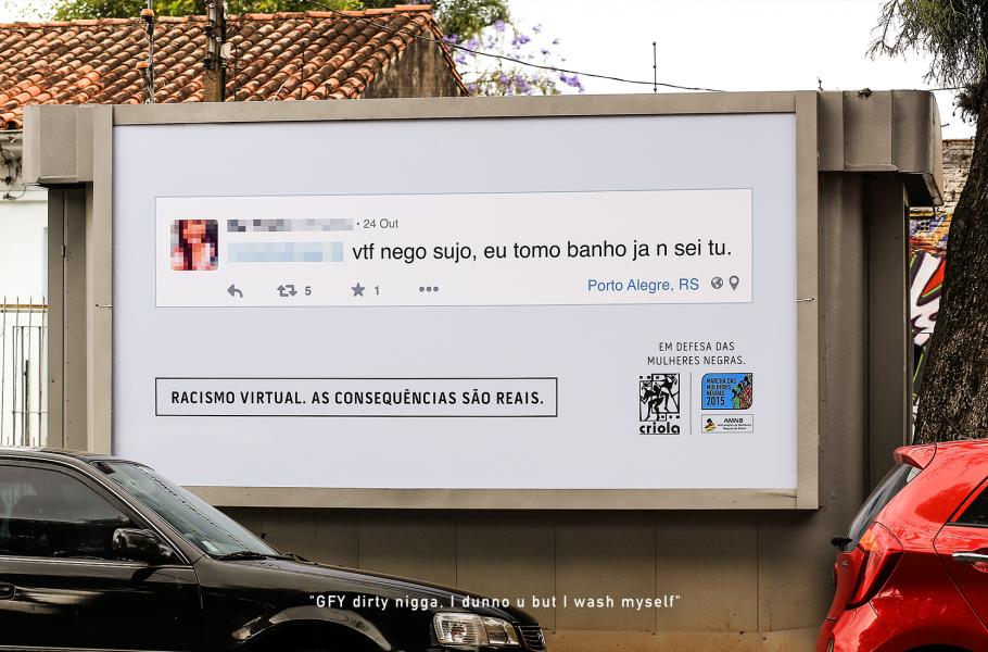 Dát lidem najevo, že internetová šikana, rasismus nebo podněcování k násilí mají dopad i ve skutečném životě, se rozhodla brazilská organizace Criola group. Jakmile její členové narazí na nějaký obzvlášť urážlivý komentář, archivují ho a díky určení polohy na Facebooku zjistí, kde dotyčný agresor žije. Poté jeho status – se začerněným jménem – vylepí na billboard blízko jeho domu. Iniciativa se jmenuje Virtual racism, real consequences neboli „virtuální rasismus, skutečné následky“, a zatím probíhá pouze v Brazílii – prospěla by však určitě více zemím.