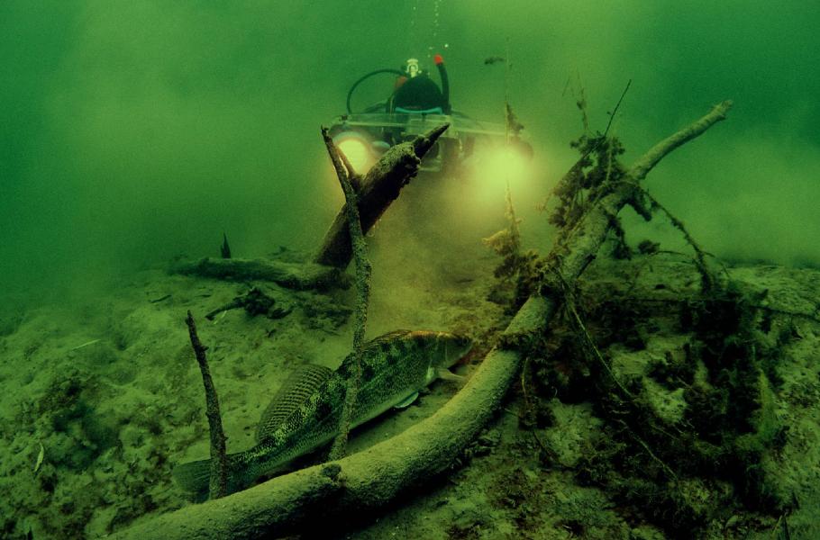 Jiskřivou čistotu štěrkového dna u hráze najednou ozdobí zlatozelená pohyblivá síť. To náhlý poryv větru odkryl a zčeřil vodní hladinu a paprsky slunce promítnou kontury vlnek až na dno. S lehounkým dechem, bez hnutí a dobře vyvážení visíme v čirém vodním prostoru. Není zde hluboko a každý neuvážený pohyb může zkalit vodu a znemožnit tak pořízení fotky či filmového záběru. A pro ně jsme tady. Jedinečné smaragdové zbarvení vody spolu s její čistotou a také bohatství zdejší vodní fauny vytvářejí lokalitu, jež je široko daleko zcela jedinečná.